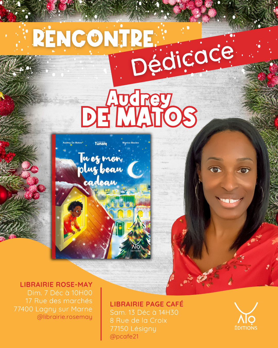 ✨ En dédicace :  Audrey de Matos, autrice de Tu es mon plus beau cadeau 📍Librairie Rose-May, 17 rue des Marchés, 77400 Lagny-sur-Marne 📅 Dimanche 7 décembre ⏰ 10h →…
