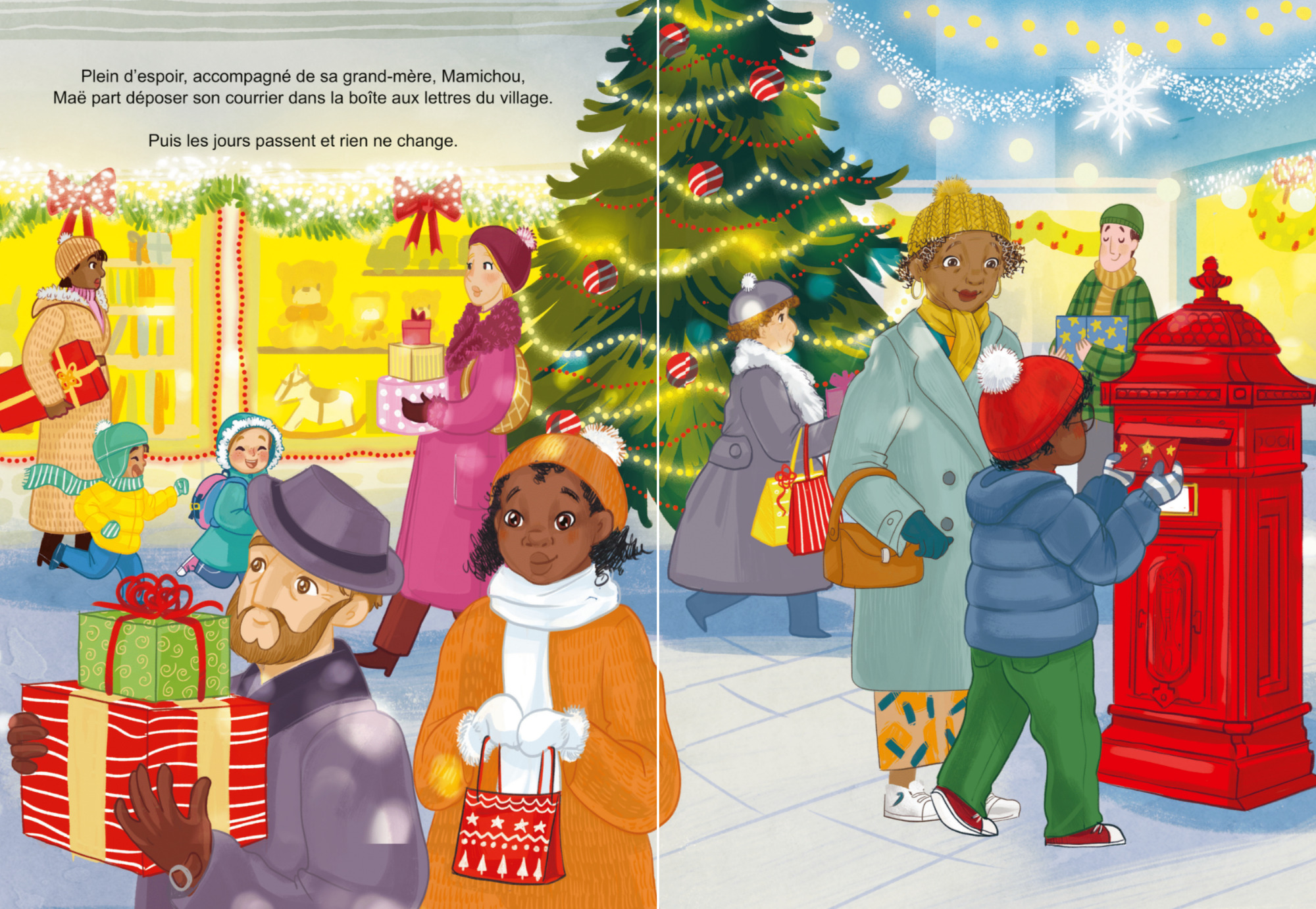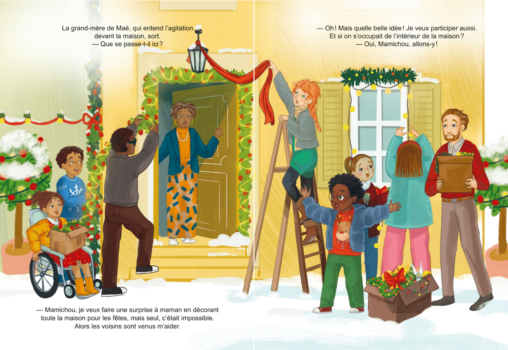 L’album raconte l’histoire de Maë, un petit garçon attachant qui va tout mettre en oeuvre pour redonner le sourire à sa maman. Il va profiter de la magie de Noël pour impliquer Mamichou, les voisins et voisines dans l’élaboration de son cadeau surprise, une maison magnifiquement décorée pour les fêtes de fin d’année.