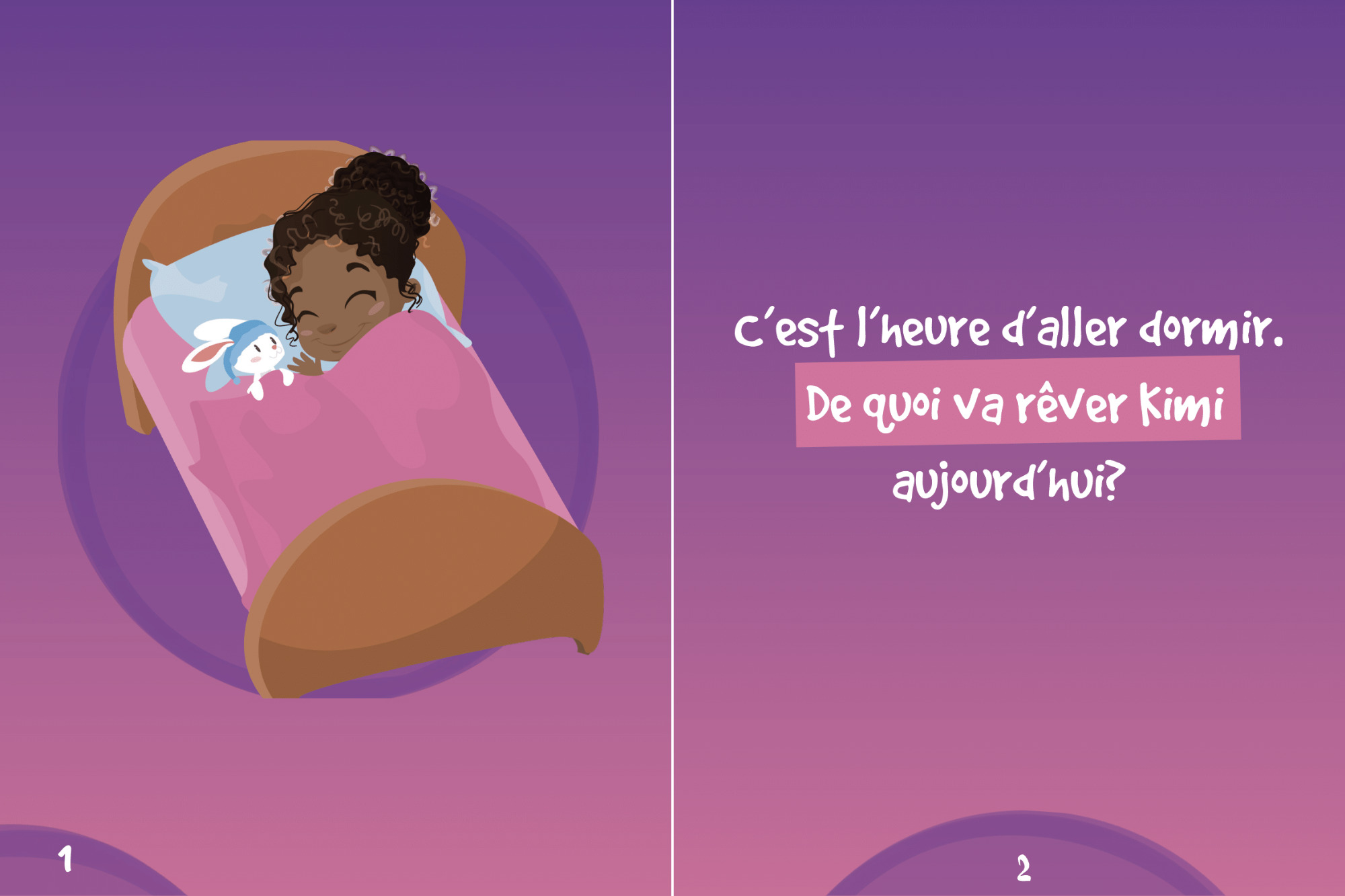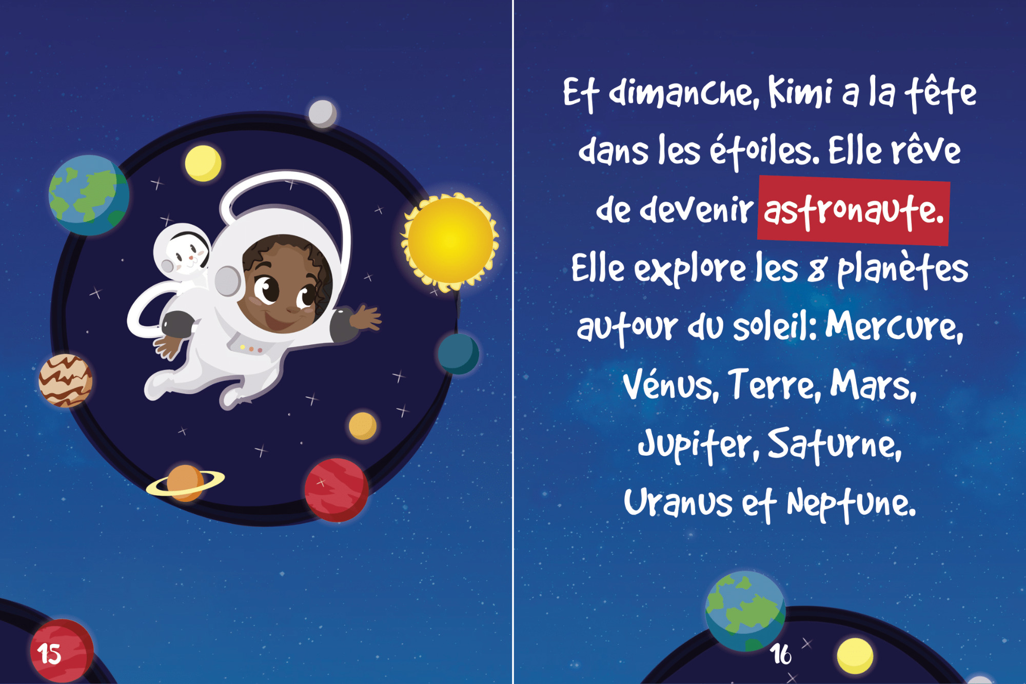 Kimi est une petite fille rêveuse. Chaque soir de la semaine, ses parents lui racontent une histoire. Et chaque soir, Kimi fait de beaux rêves. Elle rêve de ce qu’elle voudrait devenir quand elle sera grande : maîtresse d’école, astronaute, danseuse étoile….